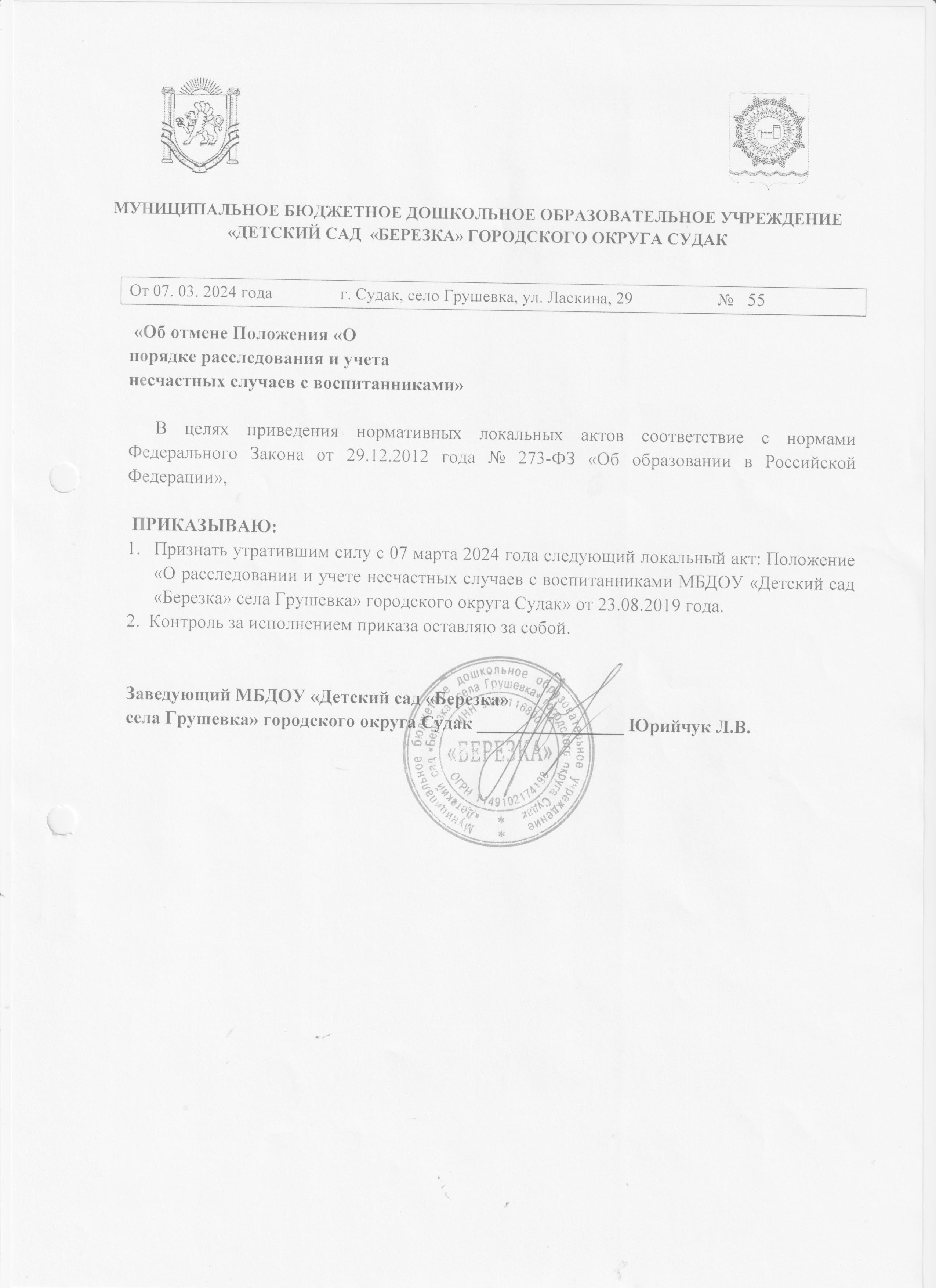 МУНИЦИПАЛЬНОЕ БЮДЖЕТНОЕ ДОШКОЛЬНОЕ ОБРАЗОВАТЕЛЬНОЕ УЧРЕЖДЕНИЕ "ДЕТСКИЙ САД "БЕРЕЗКА" СЕЛА ГРУШЕВКА" ГОРОДСКОГО ОКРУГА СУДАК